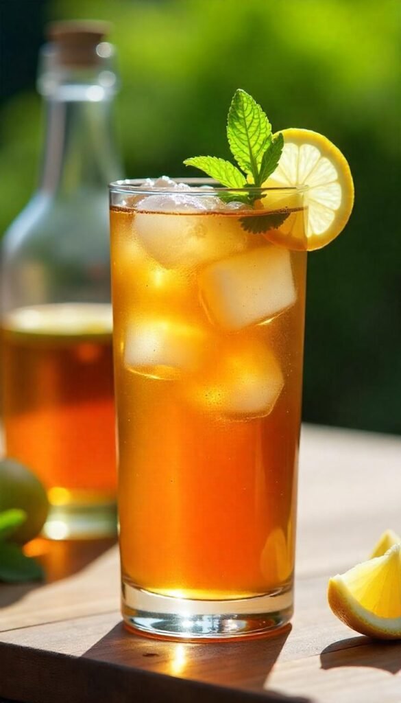 When it’s time to serve, fill glasses with plenty of ice cubes to keep the drink cold and refreshing. Pour the chilled spiked iced tea over the ice, and don’t forget to garnish with lemon slices and mint leaves for that extra touch.