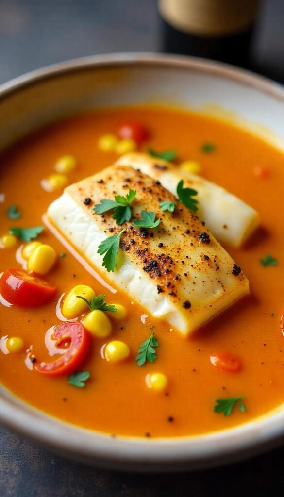 If you’re looking for a soup that embodies the essence of coastal cuisine, this Sea Bass and Corn Chowder is it. The combination of fresh sea bass and sweet corn creates a delightful harmony that captures the flavors of summer by the sea, making this chowder a perfect choice for any occasion.